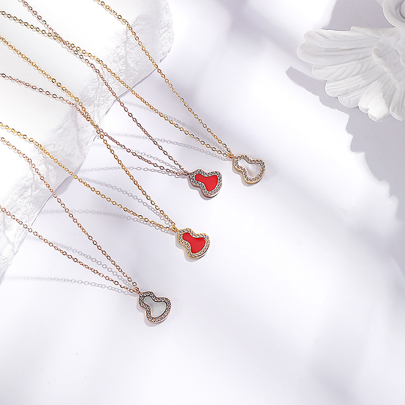 Chinese Style Red Gourd Necklace with Diamond for Women All-match Niche Design Titanium Steel 18k Clavicle Chain Elegant Trendy Jewelry