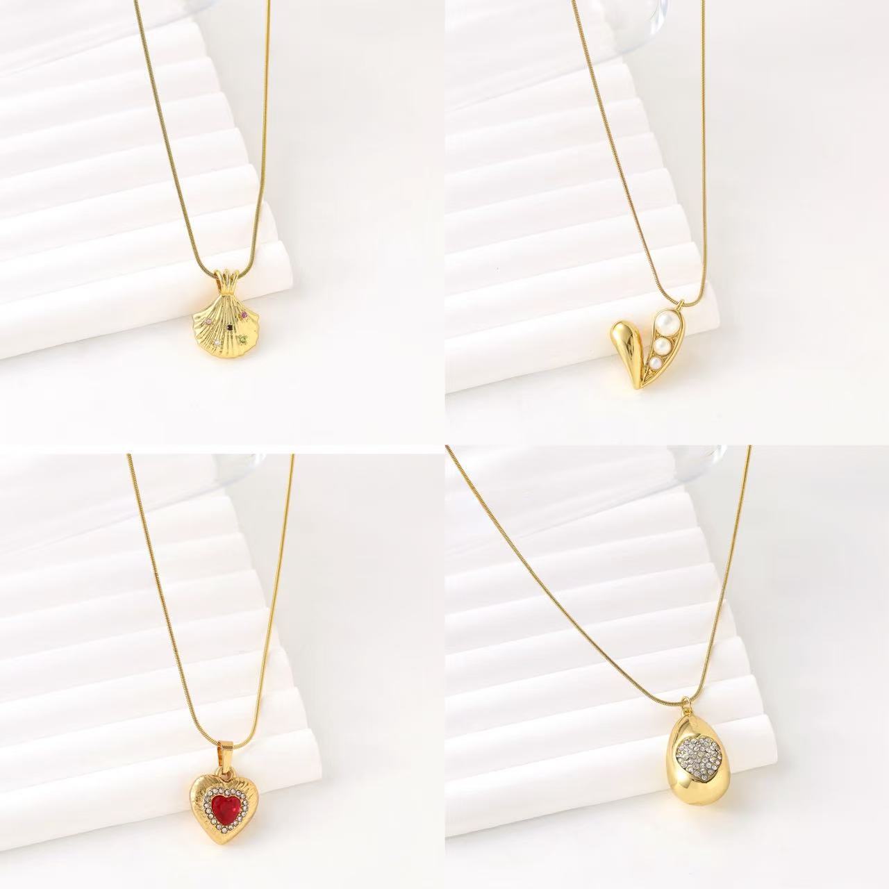 New Foreign Trade Titanium Steel Plated with Real 18K Gold Color-Preserving Round Snake Chain Geometric Heart Water Drop Shell Pendant Necklace Versatile