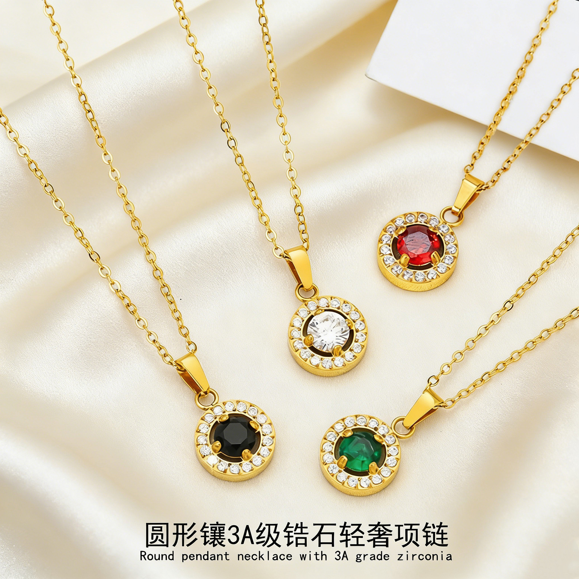 Classic Titanium Steel Zircon Necklace for Women, High-End Versatile Accessory, Stainless Steel Round Necklace, Clavicle Chain Jewelry Wholesale