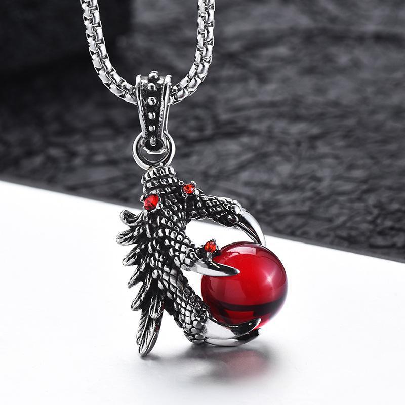Titanium steel men's dragon claw necklace national fashion retro eagle claw inlaid ruby pendant foreign trade jewelry wholesale sweater chain