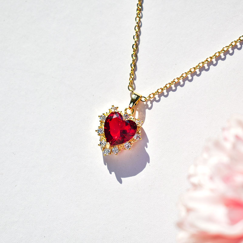 Titanium Steel Necklace Light Luxury Niche Design High-grade Red Zircon Heart Simple All-match Live Hot Sale