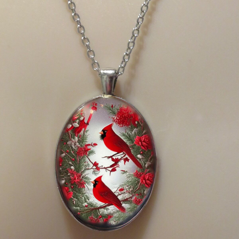 Cross-border temu Popular Drop-shaped Pendant Red Magpie Thrush Bird Necklace Couple Halloween Surprise Jewelry