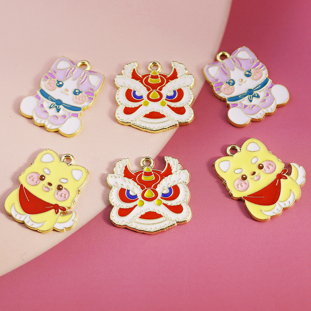 Autumn and Winter cat and dog DIY jewelry accessories cute lion dance animal necklace pendant keychain pendant material wholesale