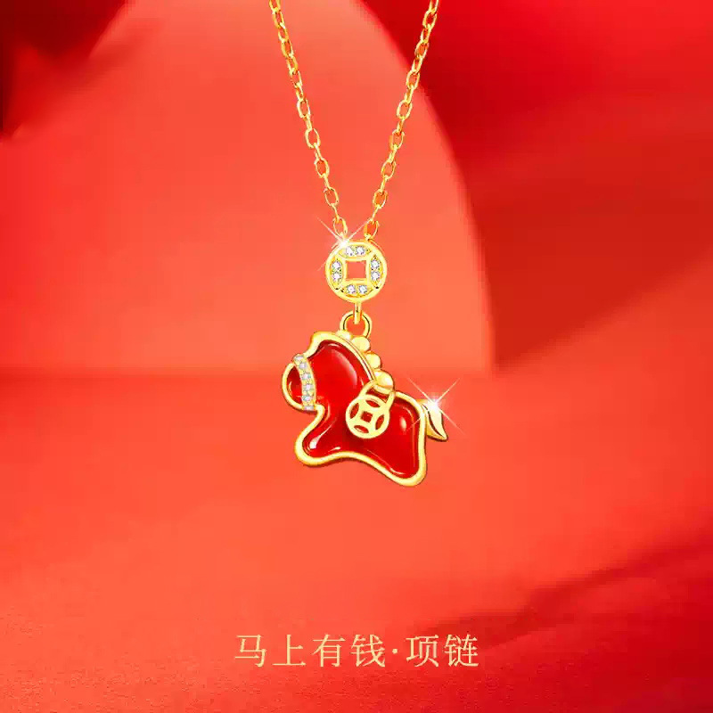 925 Sterling Silver "Get Rich Soon" Red Agate Necklace for Women, Light Luxury Chinese Trend Pendant, Year of the Horse Zodiac Gift for Girlfriend