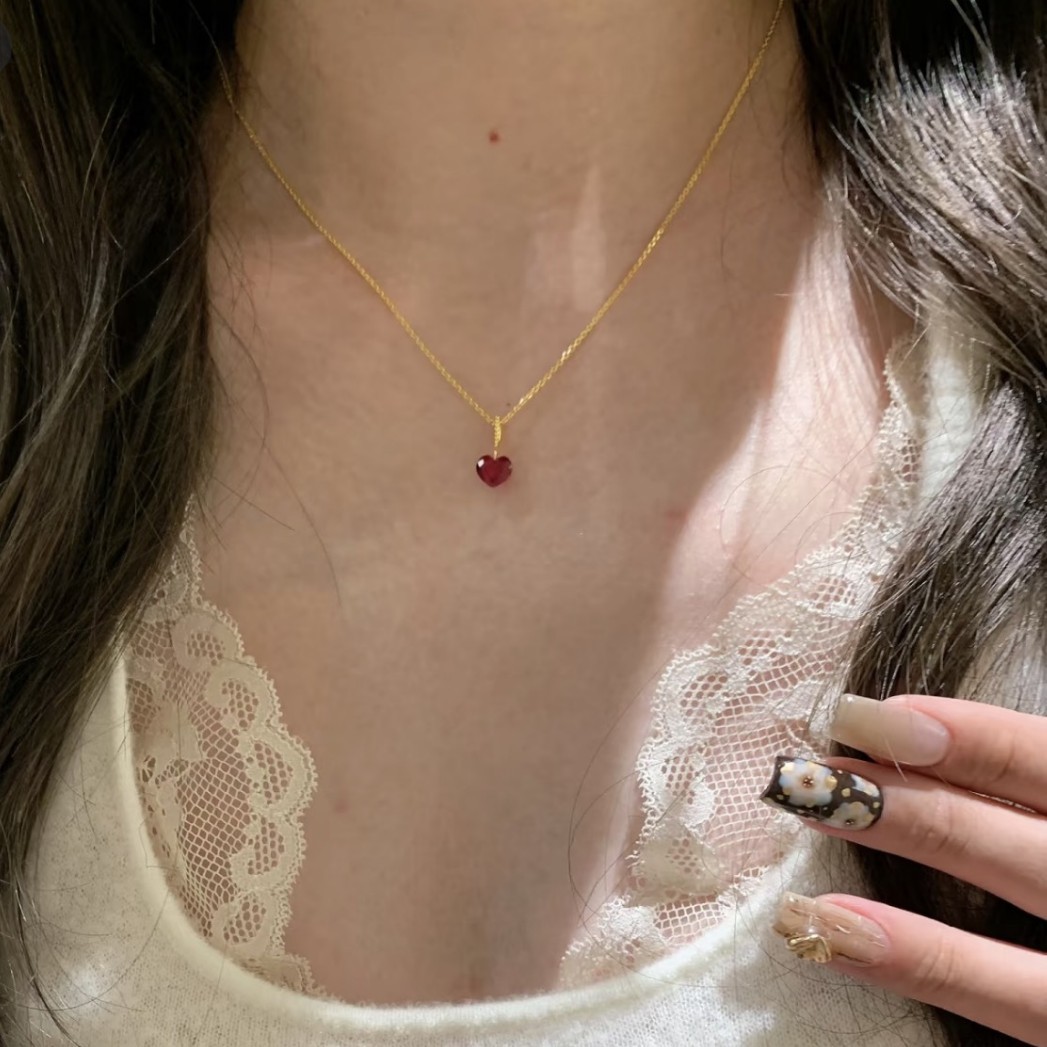 New Red Cherry Love Necklace Women's Clavicle Chain High-End Light Luxury Niche Design Simple and Versatile One-Piece Drop Shipping
