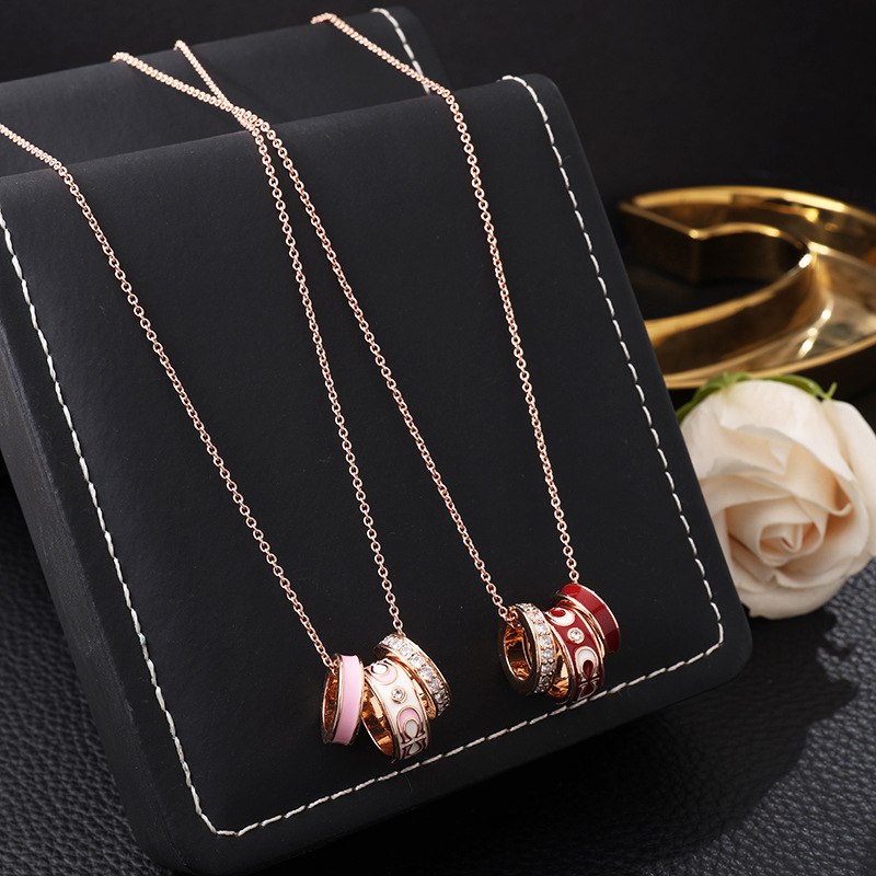 Coa Red Three-Ring Narrow Series C Necklace Coa Classic Logo Enamel Clavicle Chain for Girlfriend 520