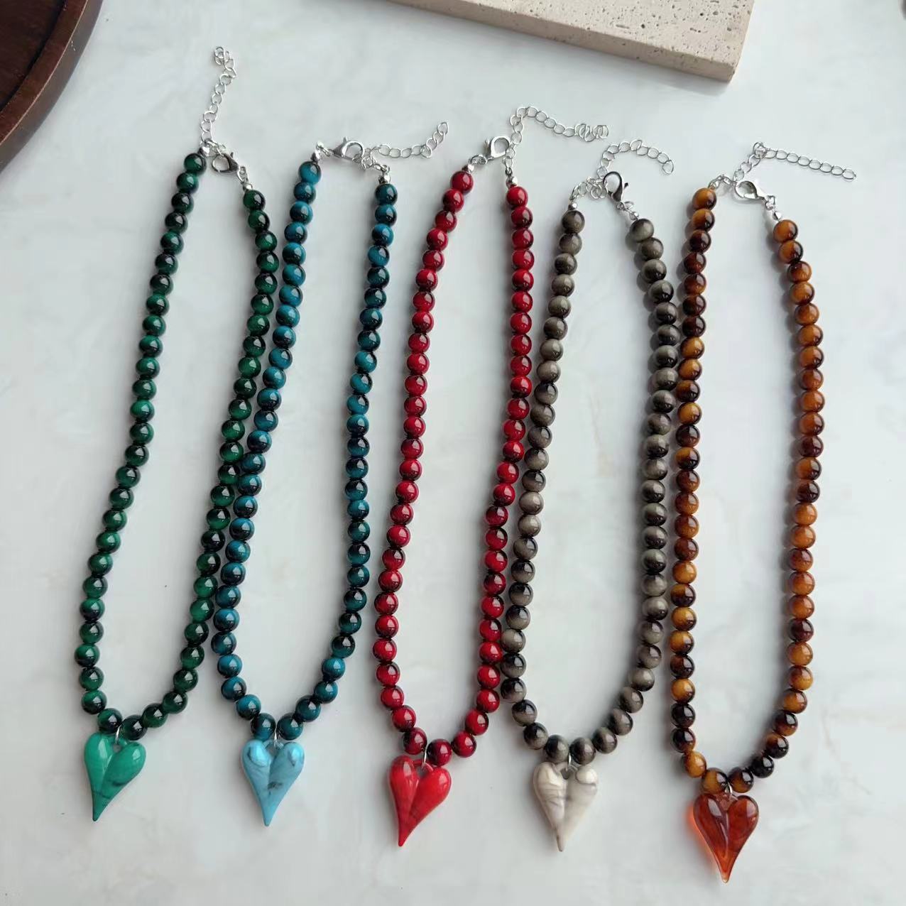 Winter Maillard Accessible Luxury Niche Coffee Color Heart Necklace Beaded High-End Natural Tiger Eye Stone Clavicle Necklace for Women