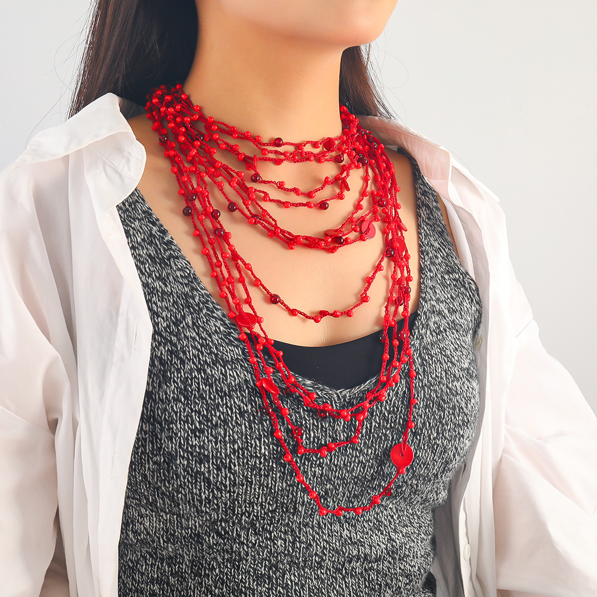 Z New Personalized Red Multi-Layer Resin Color Beaded Handmade Necklace Women's Cross-Border Supply Wholesale