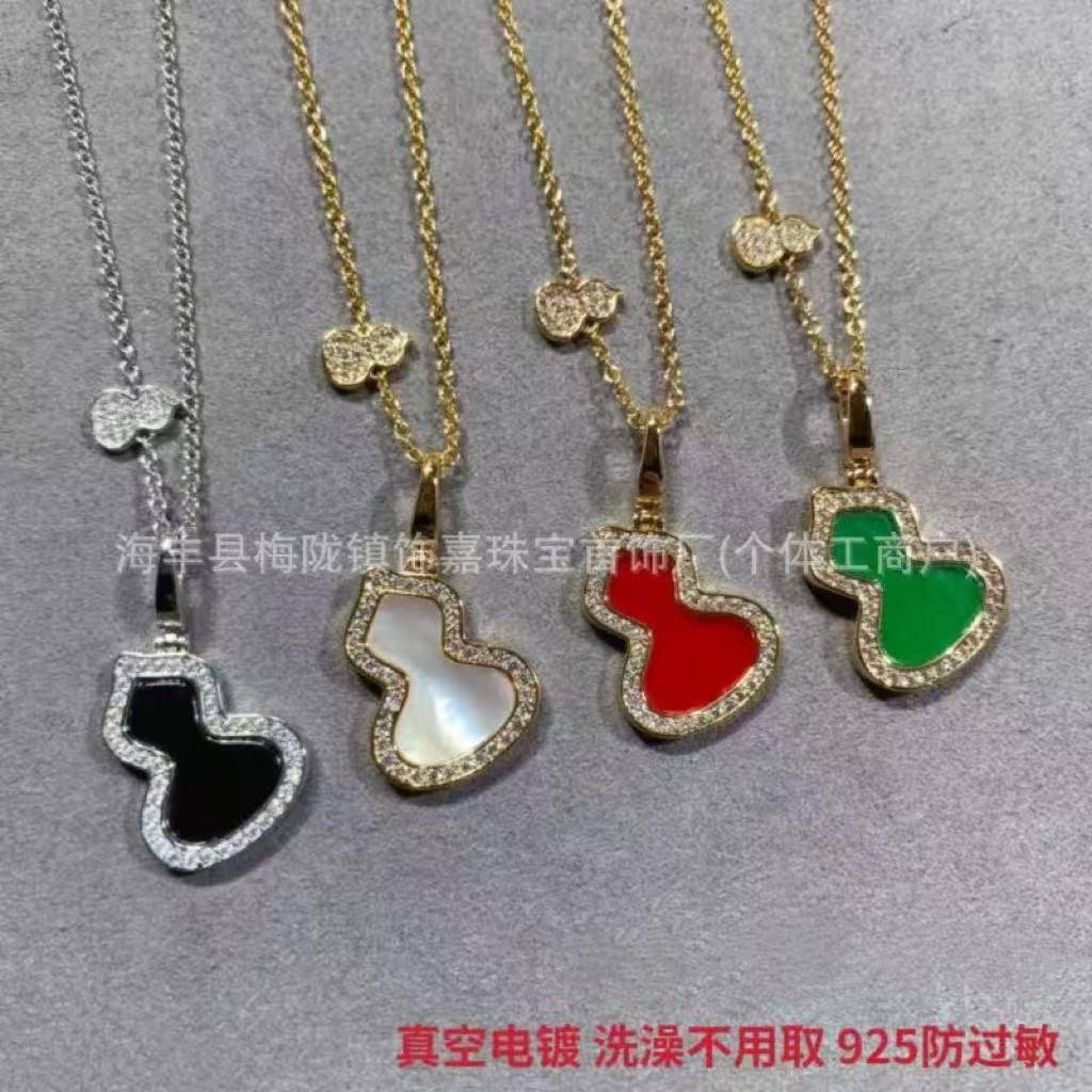 High-Quality 925 Red Chalcedony and White Mother-Of-Pearl Medium-Sized Gourd Women's Necklace Clavicle Chain Cnc Craftsmanship Factory Direct Sales and Dropshipping