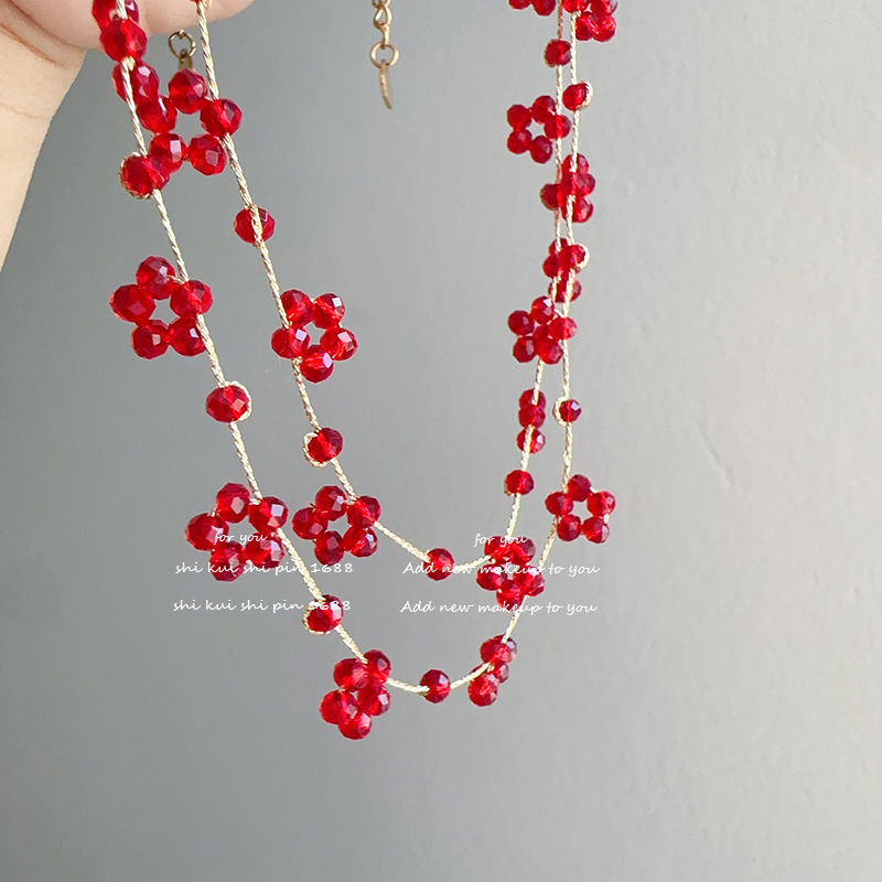 Mountain Berry Big Red Crystal Flower Necklace Female Romantic Little Red Flower Atmosphere Clavicle Chain Choker