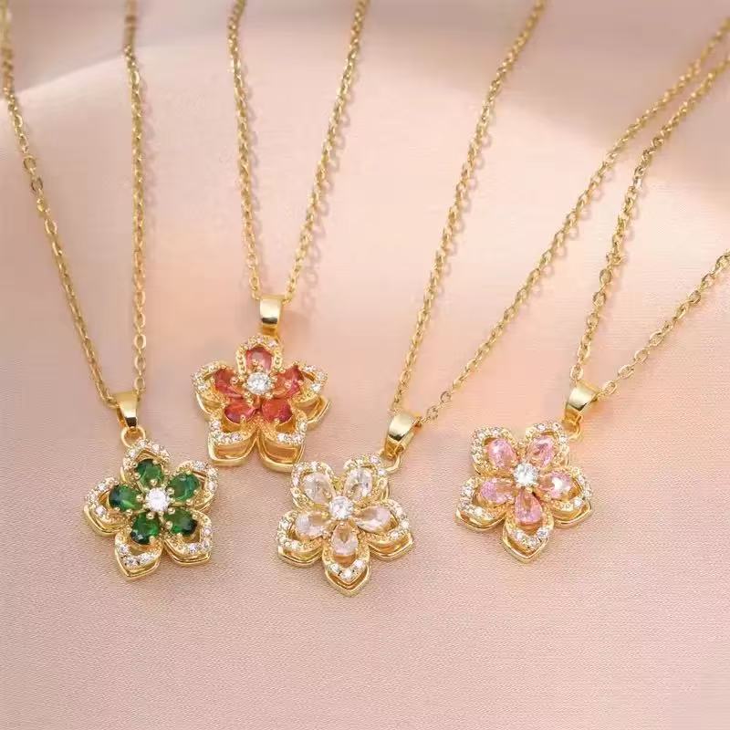 European and American Five-Petal Flower 360 ° Rotating Pendant Necklace with Light Luxury and Niche Design