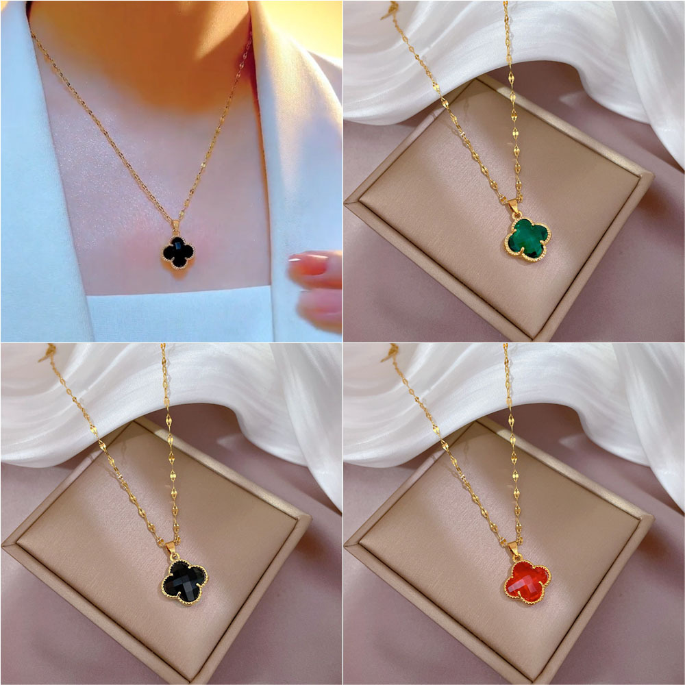 ★ Blooming Flowers ★ Pink Four-Leaf Clover Necklace Light Luxury High-End Clavicle Chain Factory Direct Sales Dropshipping