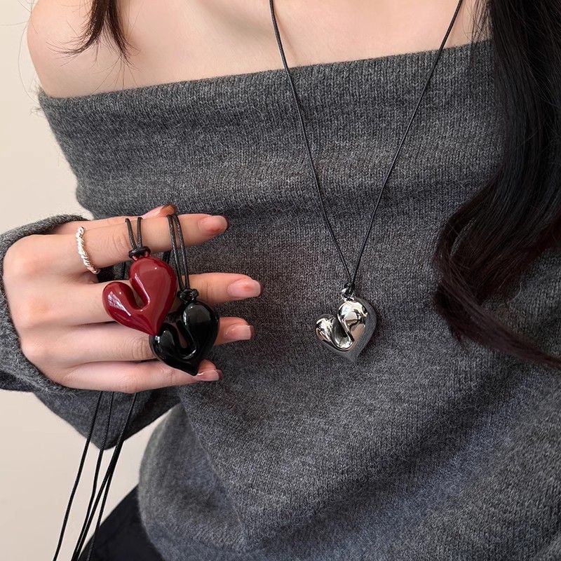 Blogger Reina's Love Necklace Women's High-end Black Rope Neck Wool Chain Drawstring Adjustable Accessories