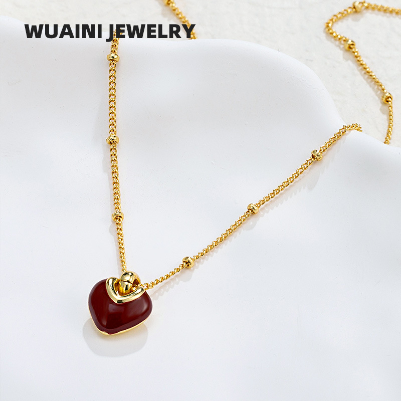 Cross-Border Red Oil Dripping Heart Necklace That Does Not Fade, Female Niche Stacked Clavicle Chain Titanium Steel Electroplating 18K Gold Christmas