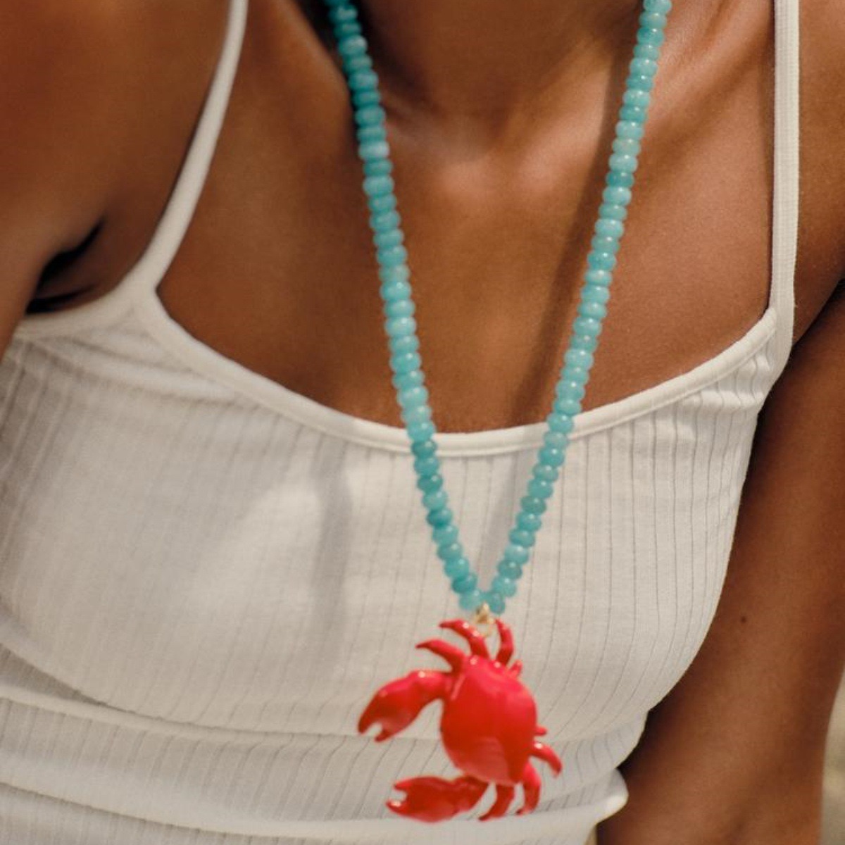 European and American Cross-border Seaside Holiday Style Red Crab Beaded Necklace Design Sense Dopamine Simple Cartoon Cute Necklace