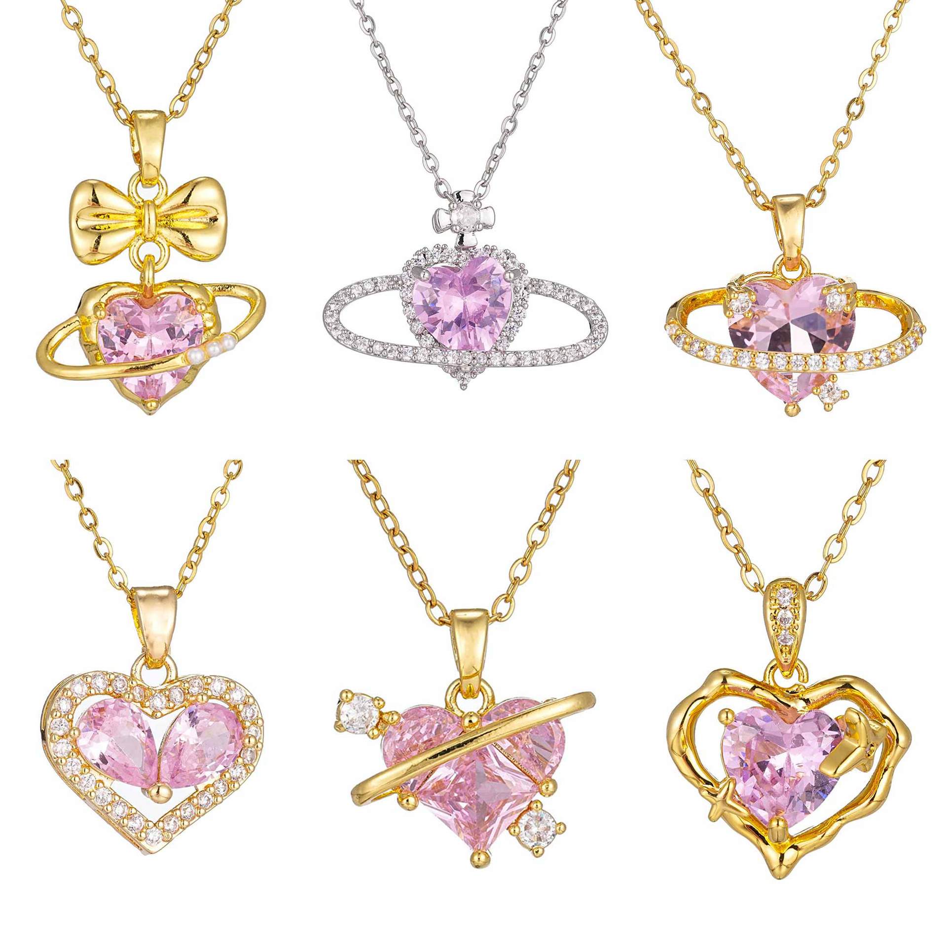 Love Necklace Women's All-match High-end Sense Zircon Crystal Bow Ins Clavicle Chain Titanium Steel Color-free Jewelry