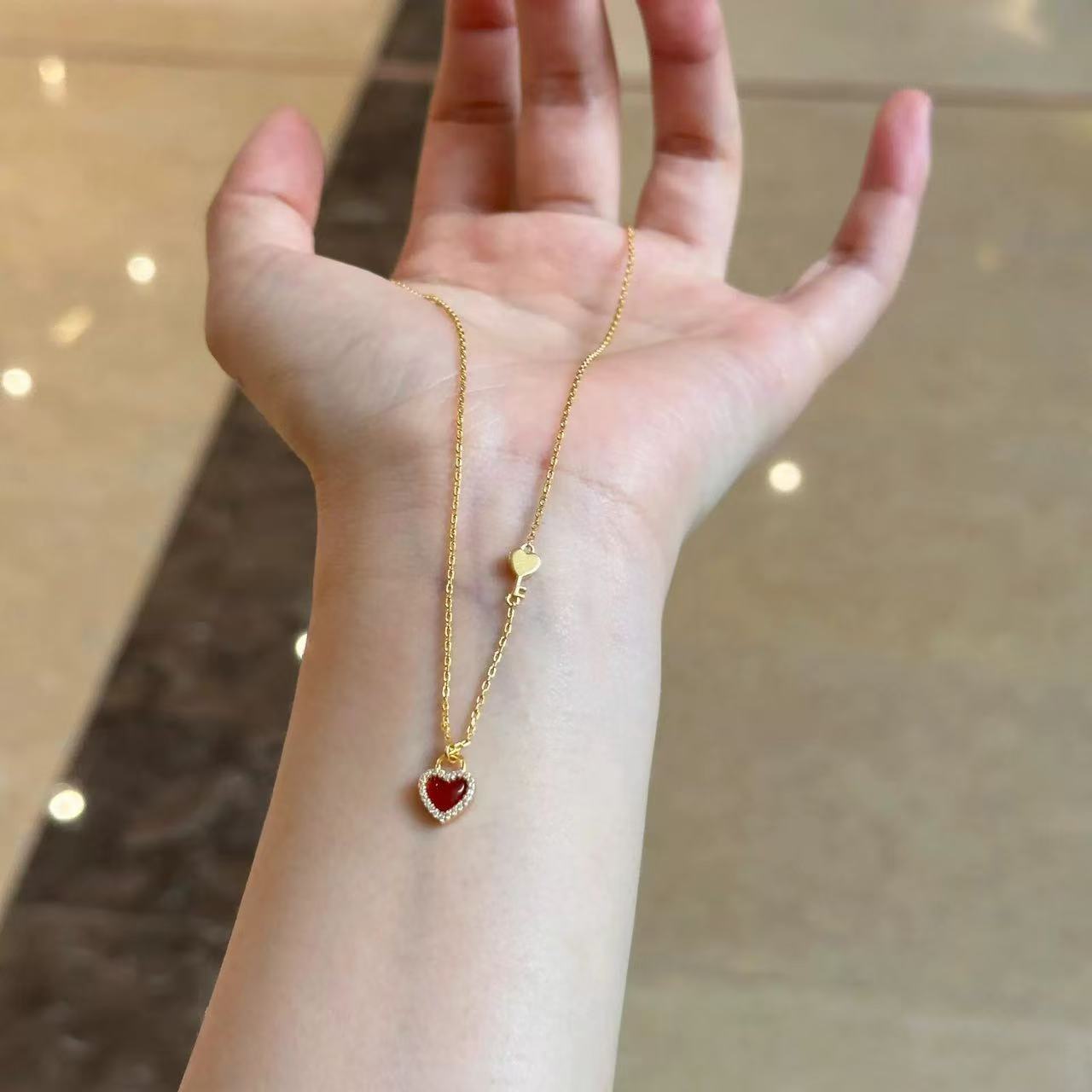 S925 Sterling Silver New Year Red Love Necklace Exquisite Niche Temperament Necklace Autumn and Winter High-grade Clavicle Chain