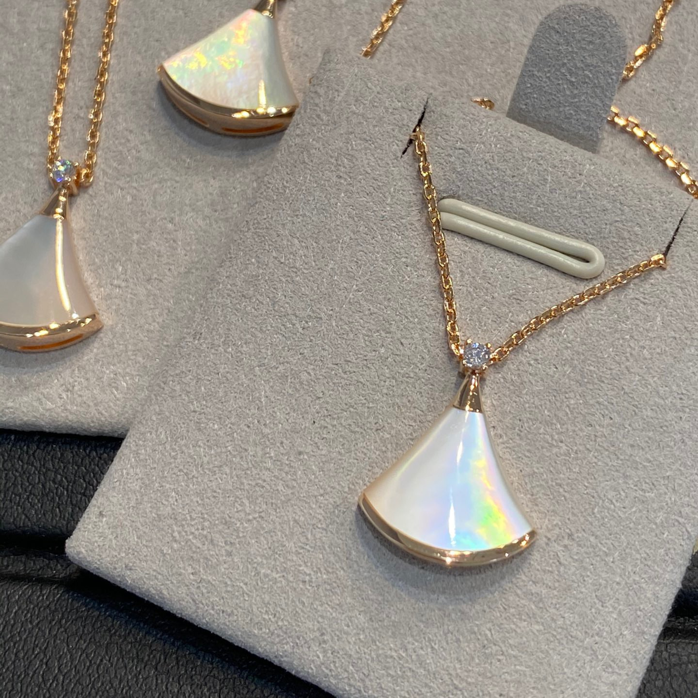 V gold new style high quality small skirt necklace small sector 18k rose gold white shell red chalcedony clavicle chain seiko