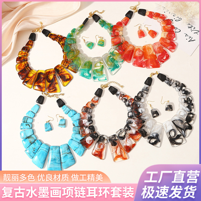 Vintage personalized gem necklace European and American style jewelry exquisite collocation clavicle chain necklace eardrop suit ladies accessories