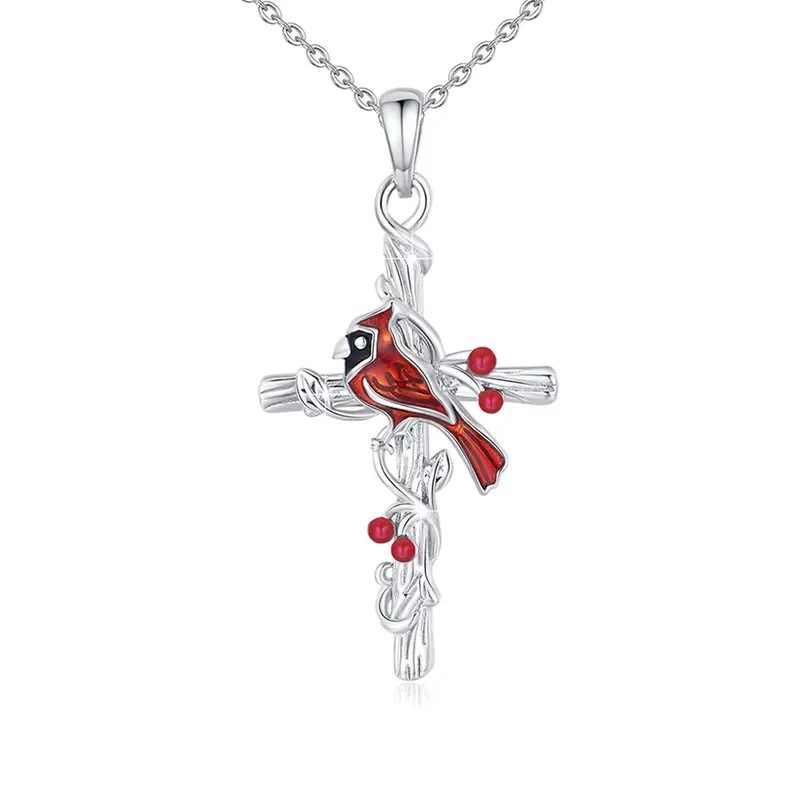 Spot Stock TEMU Cross-border New Fashion Cardinal Red Cross Bird Necklace Birthday Christmas Gift