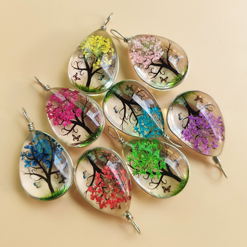 Handmade Eternal Flower Pendant, Tree of Life, Four-Leaf Clover, Dandelion Necklace, Forest Girl Dried Flower Leather Rope Necklace