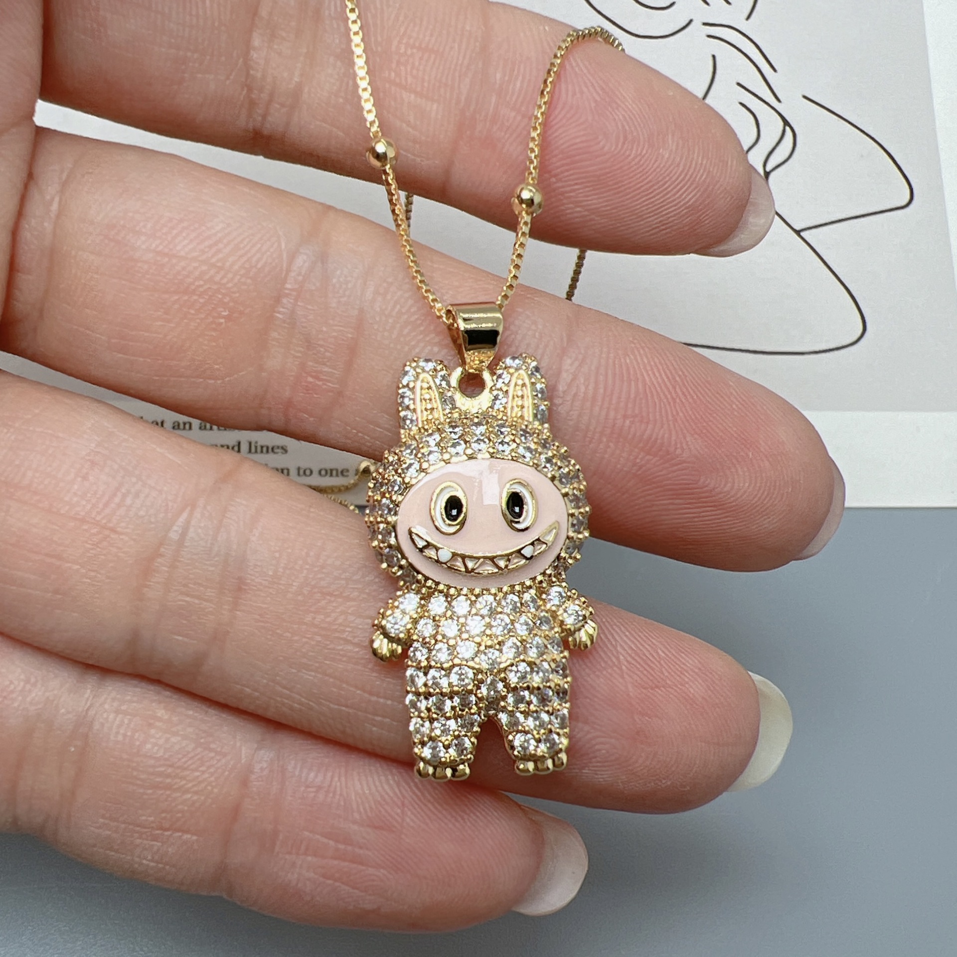 Cross-Border Hot-Selling Cartoon Labubug Doll Pendant Necklace Women's Exquisite Zircon Crystal Pendant Clavicle Chain Jewelry
