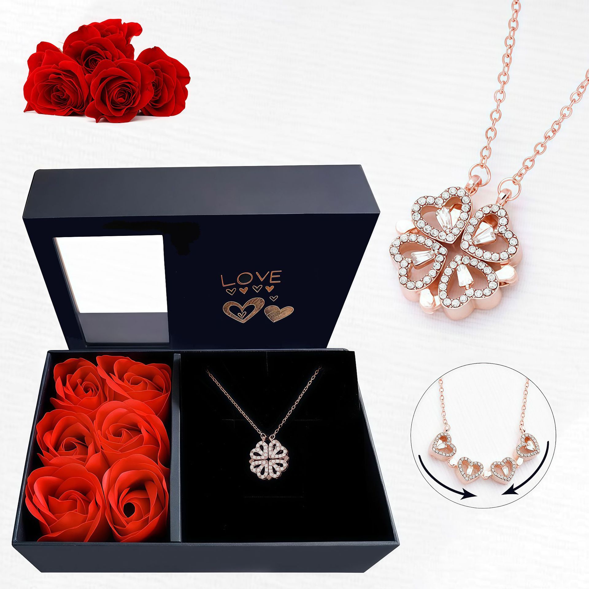 Cross-Border Hot Selling Magnetic Opening and Closing Necklace Women's Personalized Niche Design Full of Diamonds Small Love Four-Leaf Clover Pendant Clavicle Chain