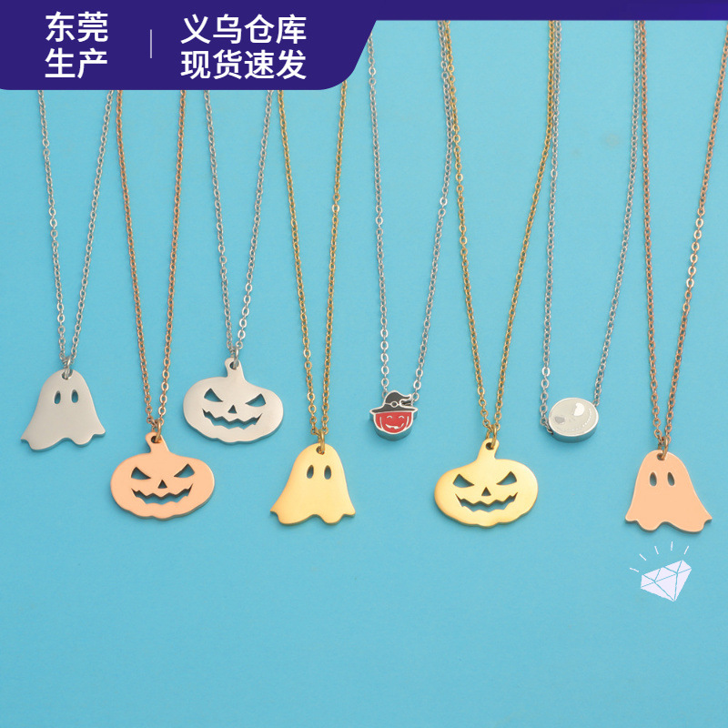 European and American Cross-border Halloween Titanium Necklace Pumpkin Head Ghost Jewelry Pendant Personalized All-match Witch Necklace