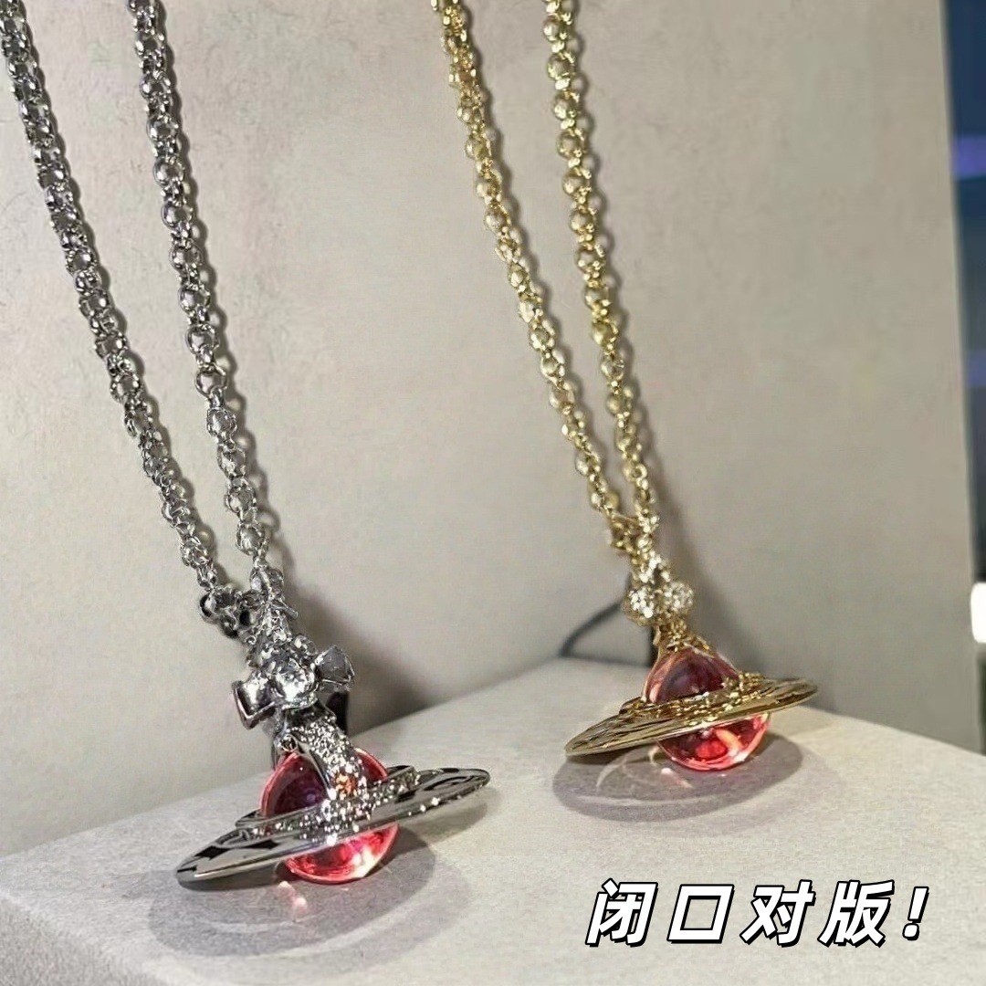 [Live Supply] Empress of the West Medium Gold Red Ball Orb Saturn Necklace Women's 10mm Bead Clavicle Chain Does Not Fade