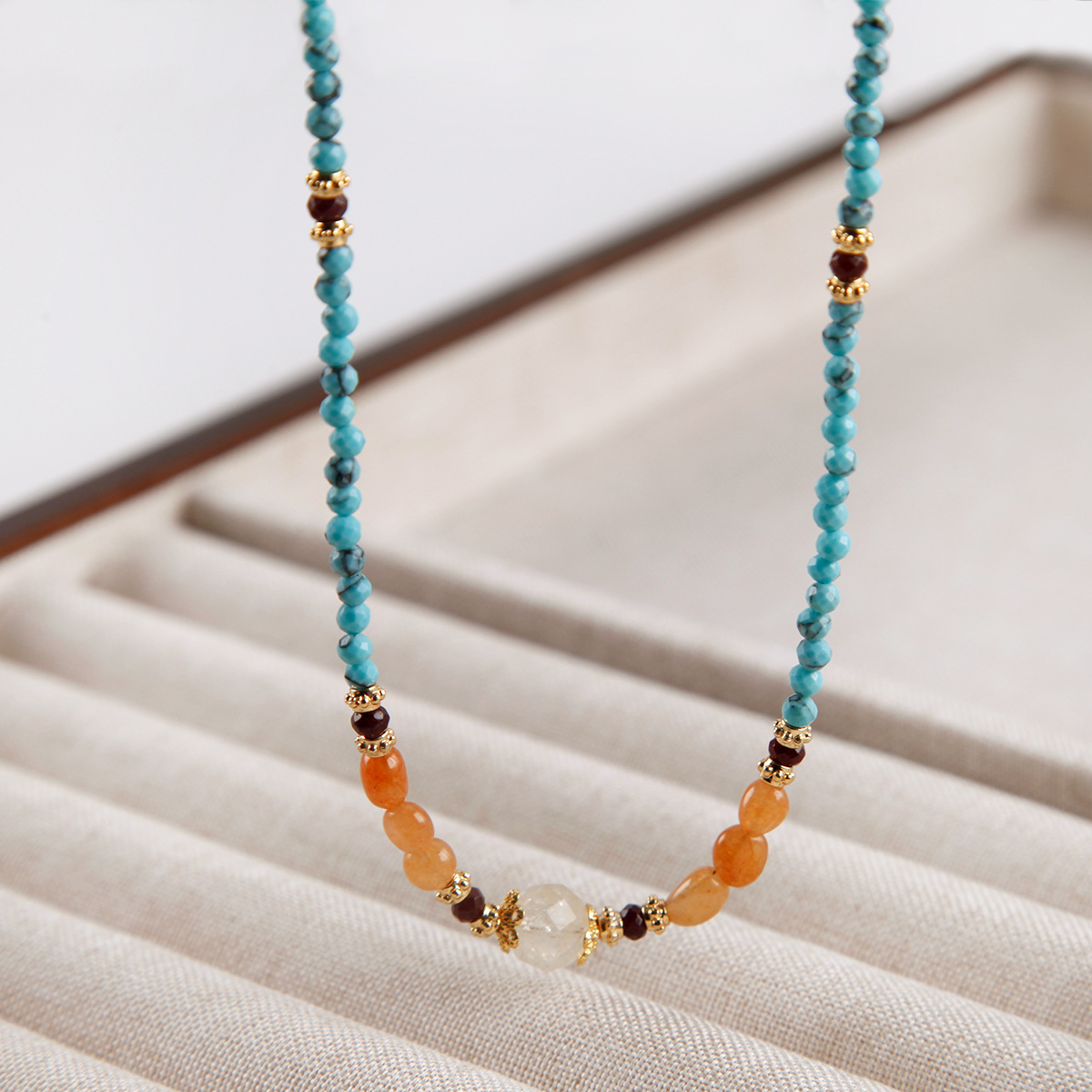 Turquoise Necklace, High-End Natural Red Aventurine Clavicle Chain, Non-Fading, Handmade, Versatile, Niche Original Necklace