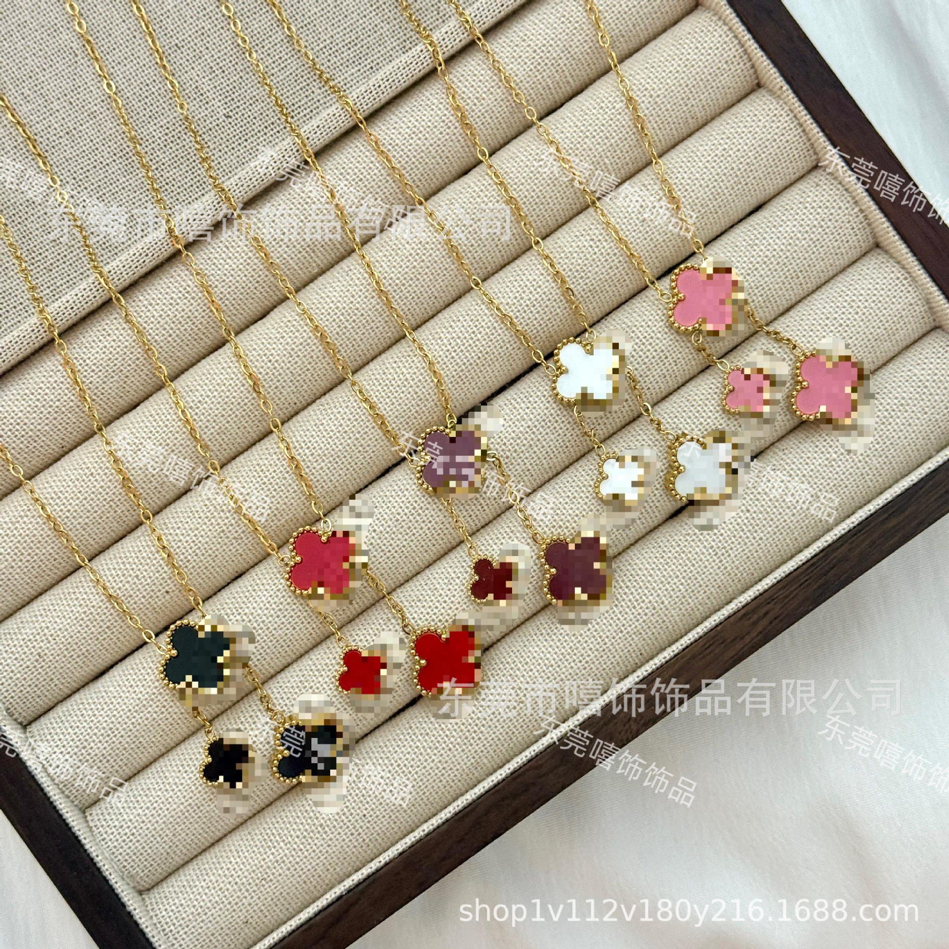 New Titanium Steel Double-Sided Lucky Four-Leaf Clover Necklace That Does Not Fade, Elegant 9+13m Mother-Of-Pearl Chain Factory Direct Sale