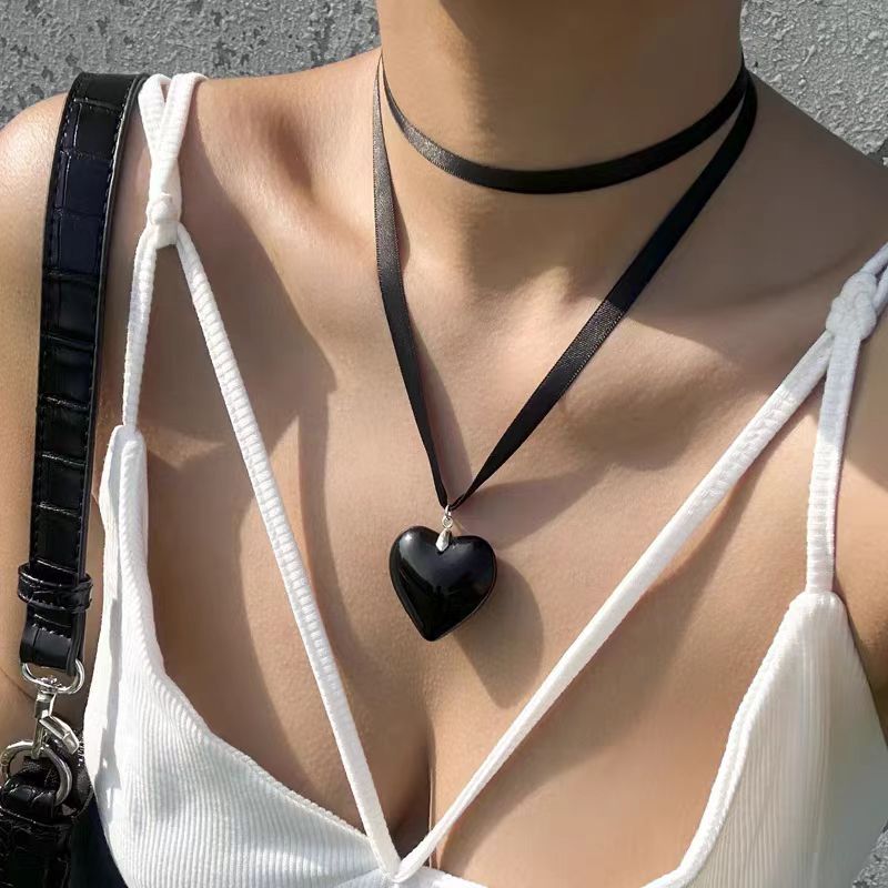Peach heart pendant ribbon necklace for women European and American summer simple fashion personality free knotted clavicle chain accessories