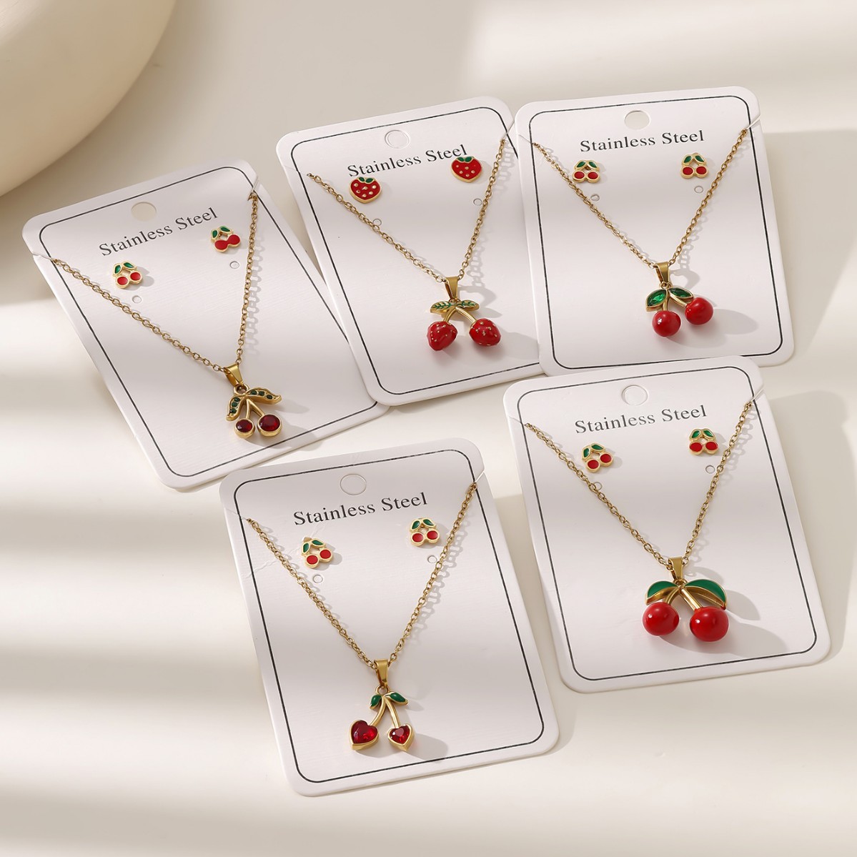 Cross-Border Cherry Red Versatile Necklace and Earrings Set Light Luxury Niche Design Clavicle Chain Temperament Exquisite Jewelry for Women