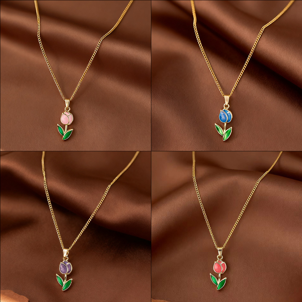 European and American Cross-Border New Romantic Flower Tulip Pendant Clavicle Chain Necklace Fashion Small Fresh Oil Dripping Necklace for Women
