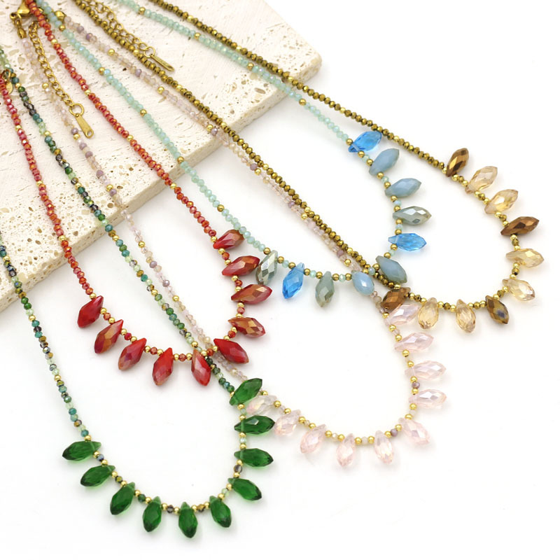 Bohemian Crystal Bead Necklace Fashion Women High-end Imitation Gemstone Facet Crystal Vintage Clavicle Chain