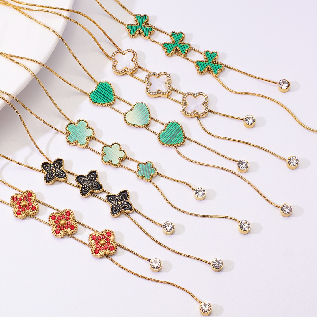 Cross-border e-commerce explosions four-leaf clover tassel necklace titanium steel 18k five-leaf flower necklace