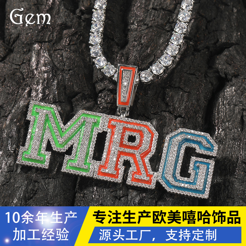 European and American trend personalized oil drop luminous mosaic letter necklace hip hop creative letter pendant holiday gift customization