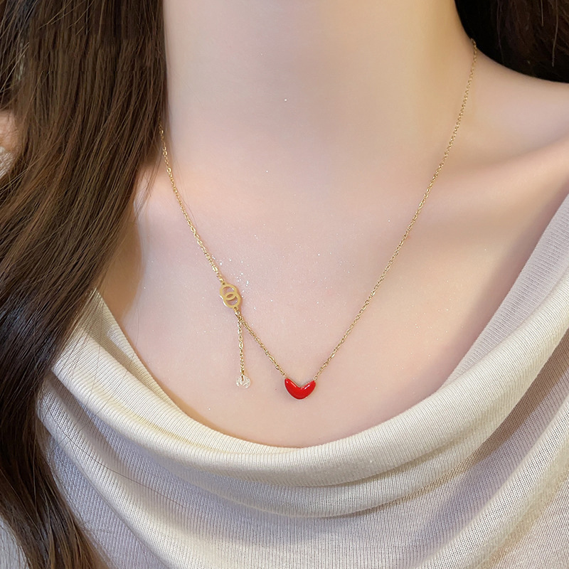 Red Love Tassel Necklace Female Zircon Pendant Ins Cold Style Collarbone Necklace Elegant Simple All-match Jewelry