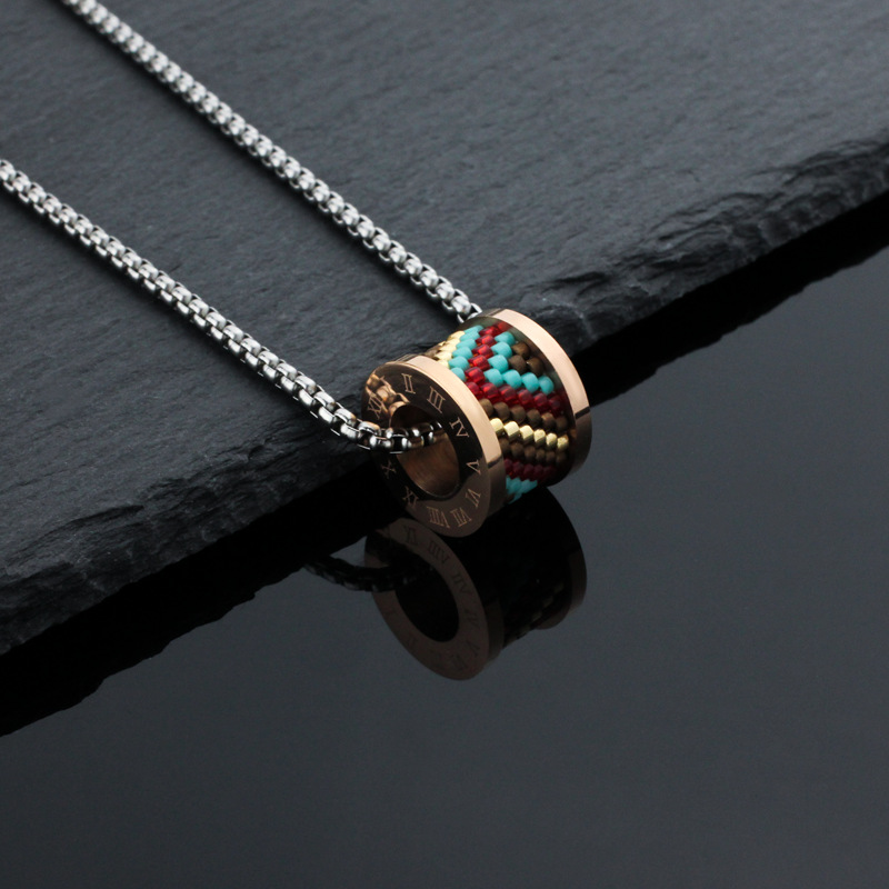 Tiktok hot sale fashion hip hop stainless steel Japanese glass rice beads small waist necklace titanium steel small waist pendant