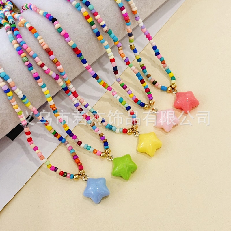 Ins Style Colorfulful Rice Beads Beaded Necklace Dopamine Sweet and Cute Girl Colorfulful Five-Pointed Star Clavicle Chain