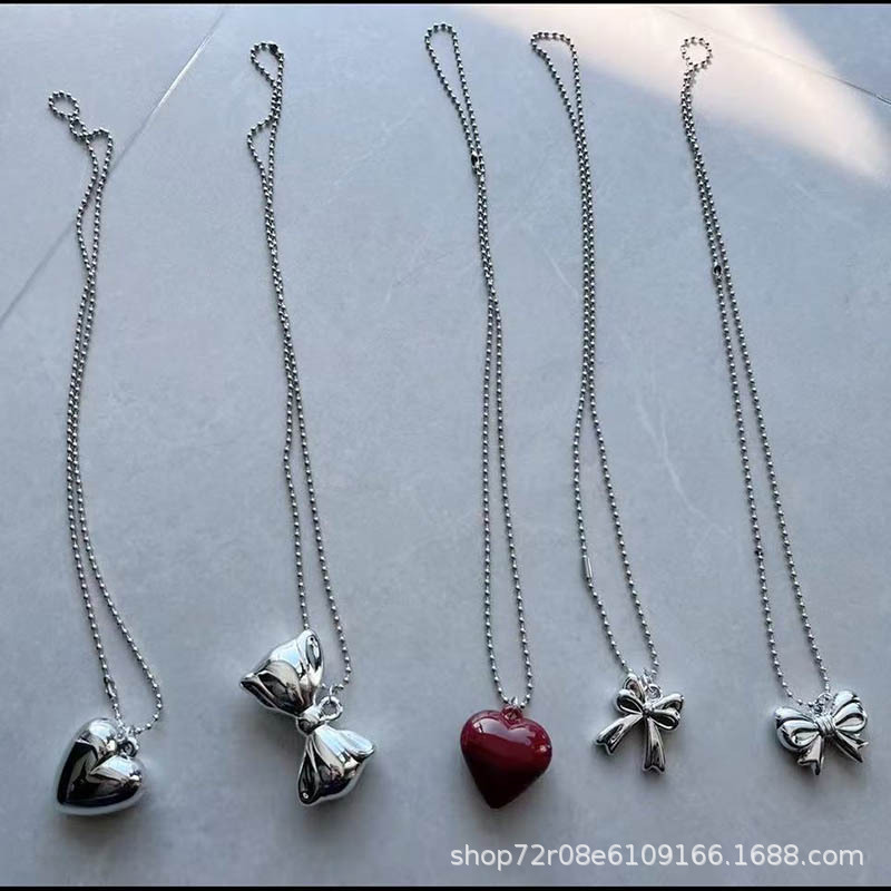 Unique Exaggerated Large Heart Bowknot Puppy Metal Long Necklace for Women, Light Luxury, Simple, Exquisite, Versatile Choker Factory