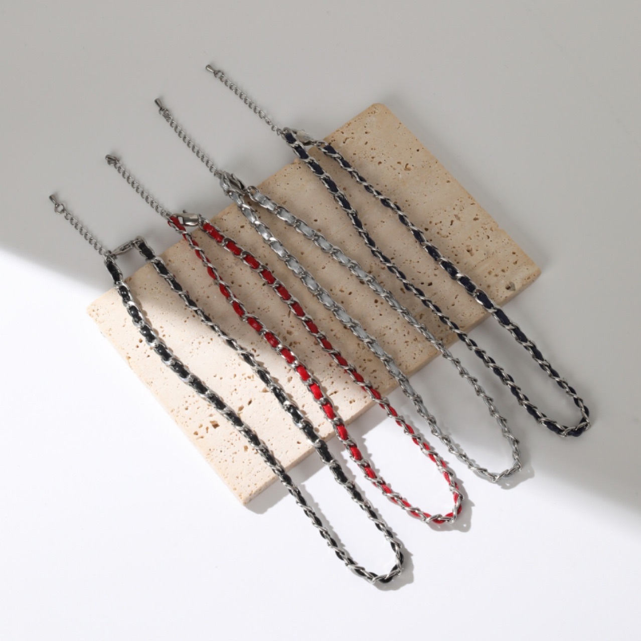 Cross-Border New Stainless Steel Braided Leather Rope Small Fragrance Titanium Steel Multi-Color Clavicle Necklace Bracelet Without Pendant