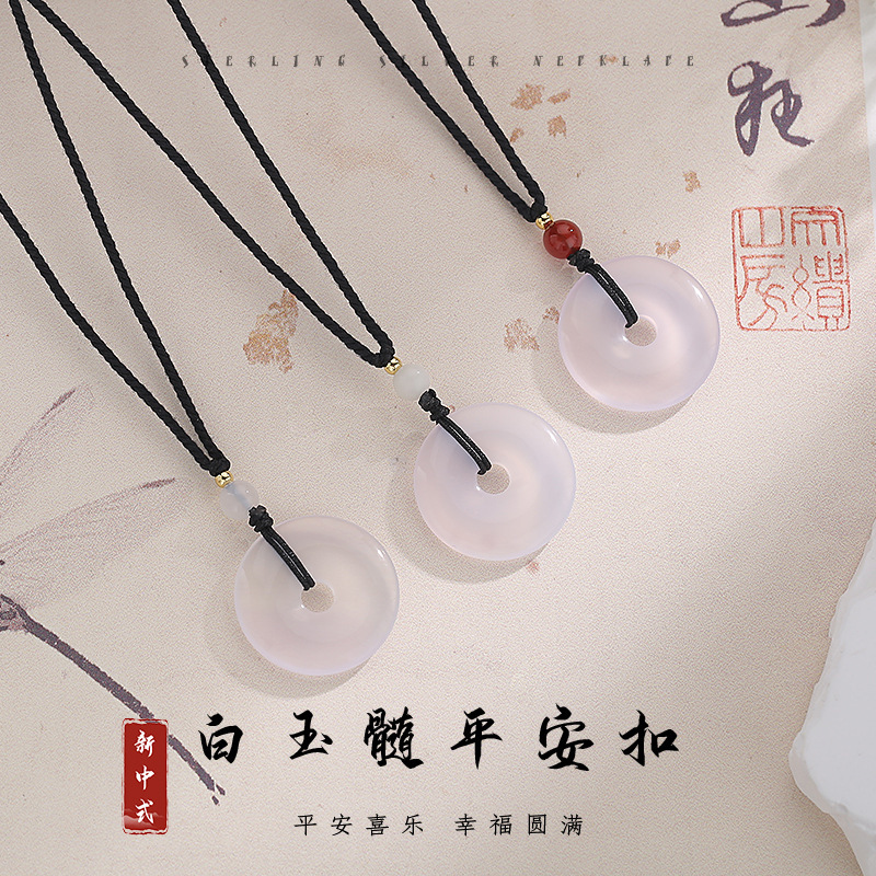 Imitation White Chalcedony Safety Buckle Bodhi Braided Necklace Simple Niche Versatile Perfect Jade Necklace Clavicle Chain