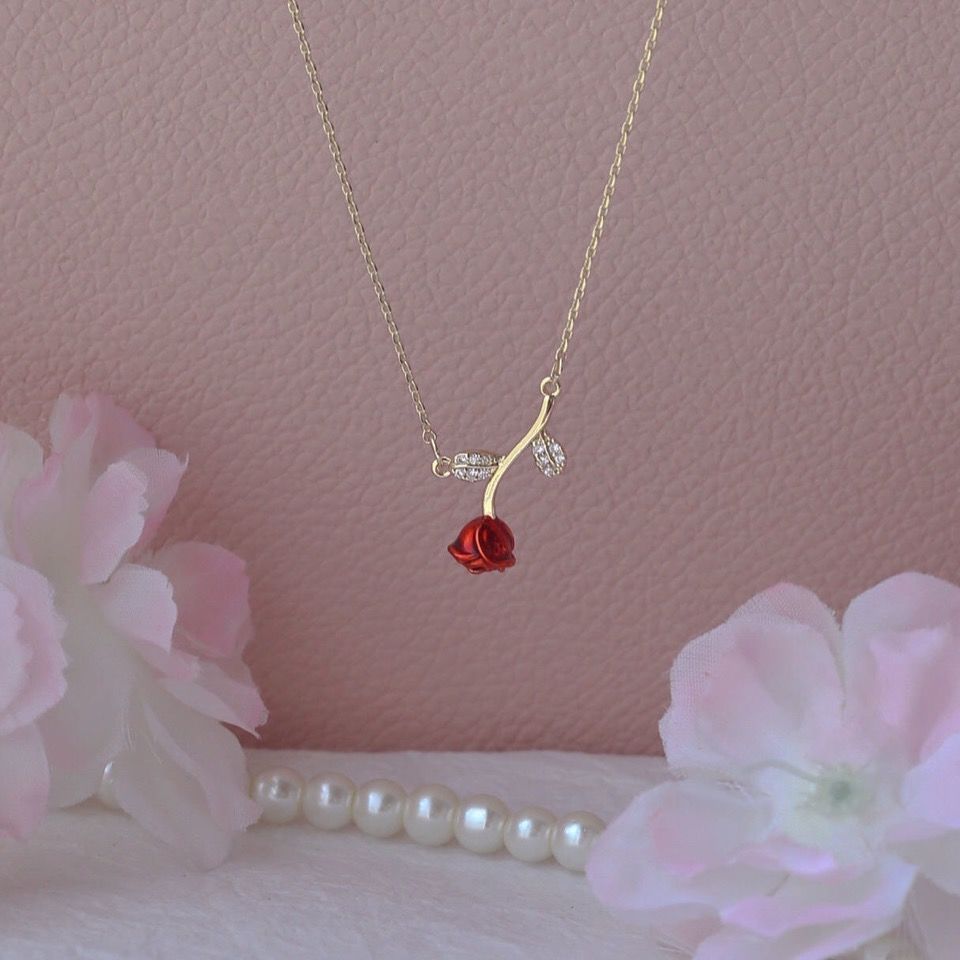 Little Prince Rose French Retro Rose Wine Red Elegant Exquisite Zircon Necklace Female Niche Clavicle Chain Female