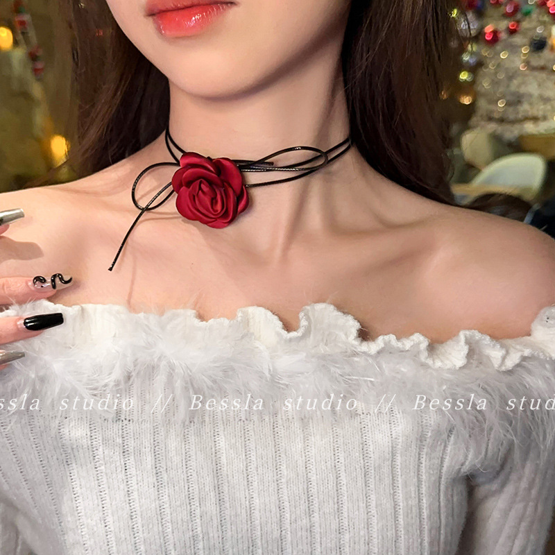 Red Rose Choker Necklace Women's Neck Flower Collarbone Chain Accessory Strap