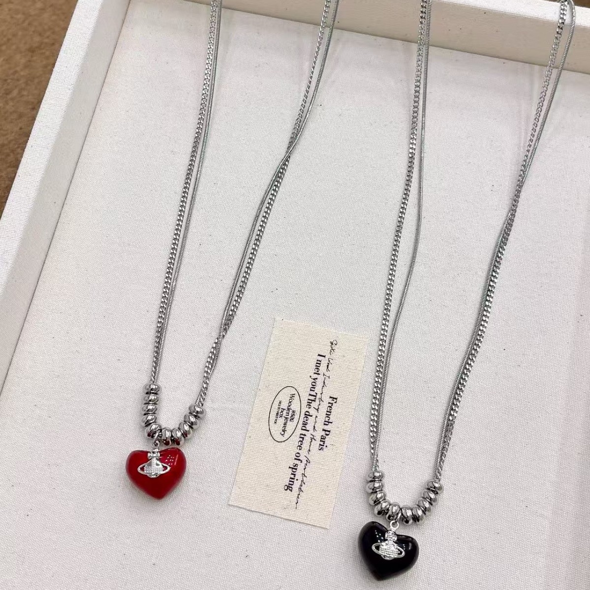 Saturn Heart Pendant Sweater Chain Double-Layer Beaded Niche High-End Versatile Trendy New Popular Accessory Necklace