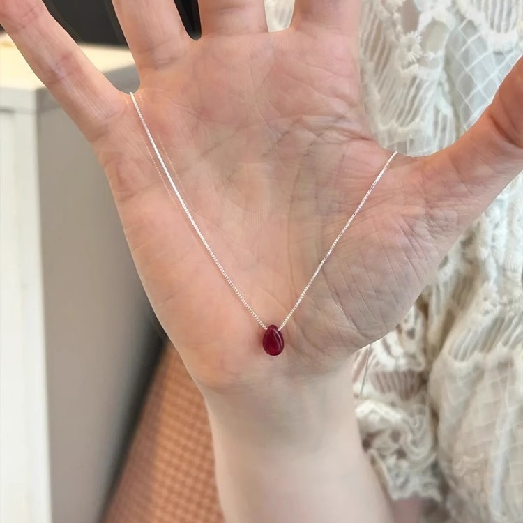 Sweet Style Red Bean Water Drop Chalcedony Pendant Necklace Women's New Chinese Style Red Simple Clavicle Chain 2024 New Necklace
