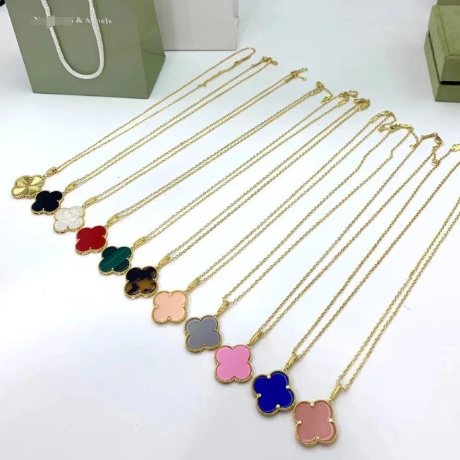 Cross-Border 2024 New Gold Large Lucky Four-Leaf Clover Double-Sided Laser Necklace Live Factory Wholesale