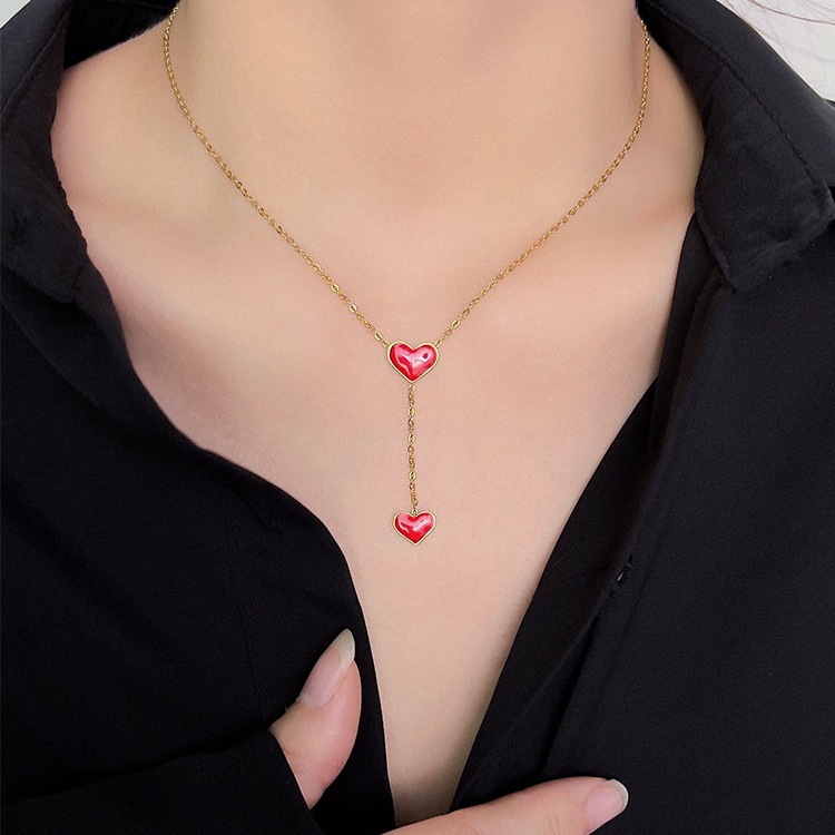Red Love Necklace Women 2024 New Trendy Niche Clavicle Chain Personalized Enamel Pendant Titanium Steel Net Red Jewelry