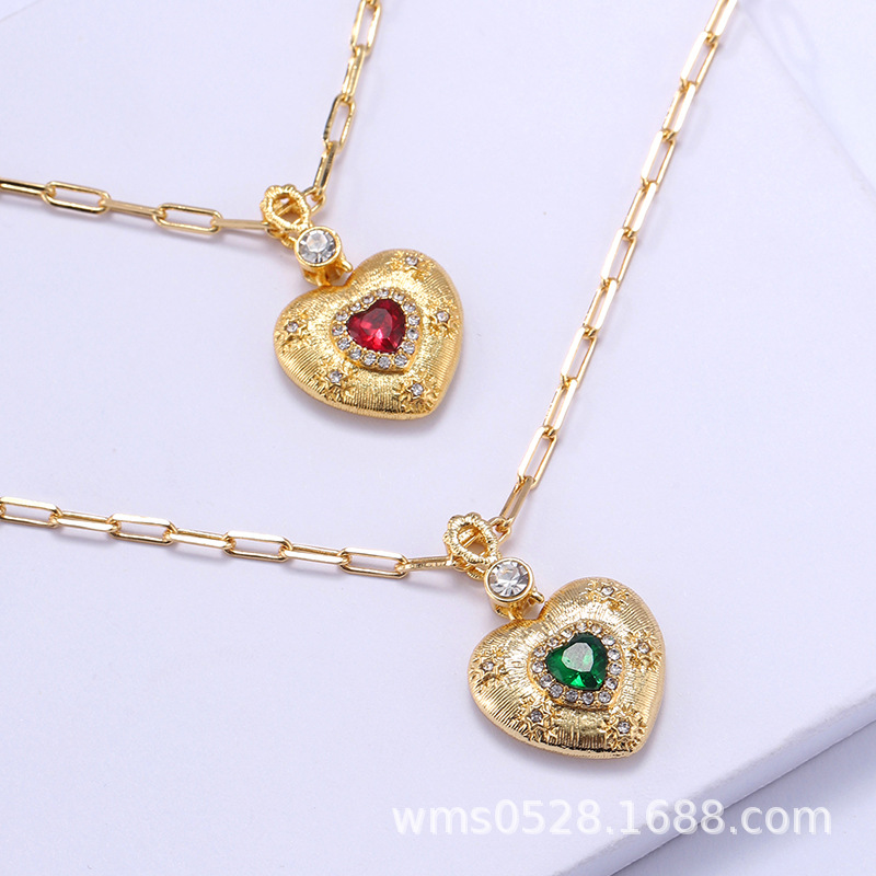 Factory Direct Supply Wish New Style Jewelry Korean Version Heart-Shaped Necklace Collarbone Chain Sweater Chain Wholesale
